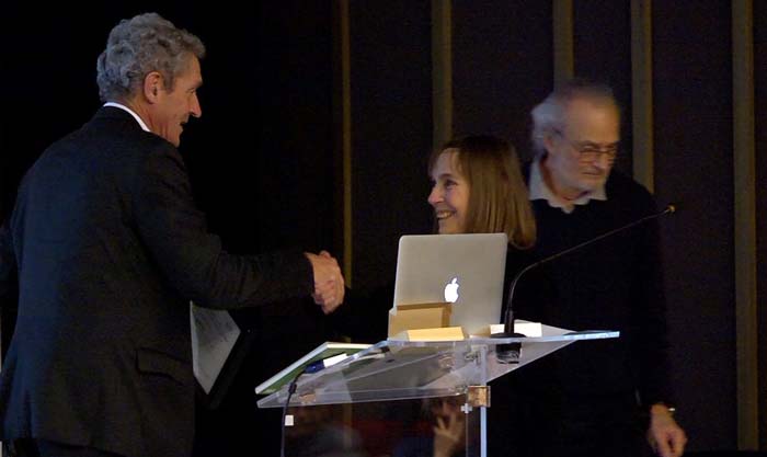 Christophe Salomon remettant le prix à Edith Falgarone le 11 décembre 2018