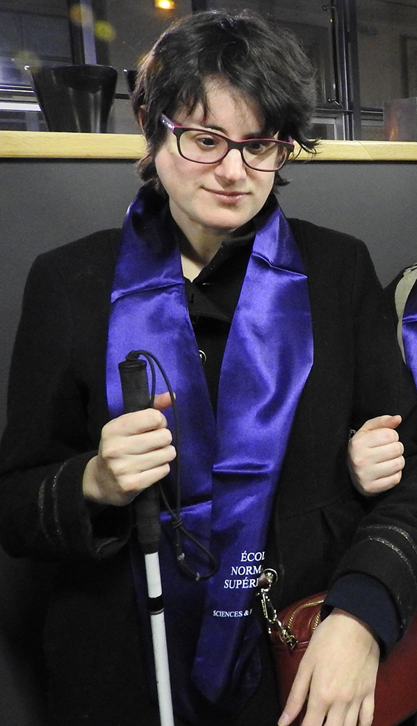 Lorsque Claire est arrivée à l’École, à la rentrée 2011, précédée de la rumeur selon laquelle c’était la première fois, ou l’une des premières fois, qu’un candidat aveugle avait été reçu au concours, ce fut un grand bouleversement personnel. J’ai vu arriver au département une jeune fille extrêmement déterminée à mener une scolarité exemplaire, avide d’apprendre, heureuse de prendre son indépendance en installant sa chambre d’internat, attachée à la poursuite du sport et de la musique, qui occupaient une grande place dans sa vie. L’École n’était, en fait, pas vraiment préparée à l’accueil d’une élève non-voyante, et les efforts — en particulier, ceux de Daniel Petit et de Martine Bonaventure — pour que ses années de scolarité se passent dans les meilleures conditions ont dû être tenaces. Mais la volonté impressionnante de Claire, dans ce domaine comme dans le reste, a aussi permis que ce temps de formation se déroule de manière heureuse et profitable, pour elle, pour ses camarades, pour ses professeurs.