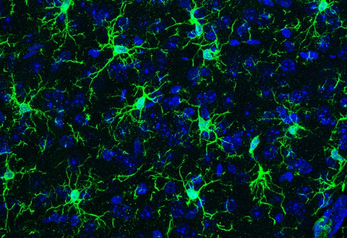 Les microglies sont des cellules immunitaires qui répondent à des traumatismes ou des signaux inflammatoires pour protéger le cerveau, agissant comme des senseurs capables de détecter de nombreux signaux environnementaux. Ces cellules immunitaires sont également impliquées dans différentes étapes du développement et du fonctionnement cérébral. Ainsi, des dysfonctionnements de ces cellules sont associés à un large spectre de pathologies humaines, allant des troubles neuro-développementaux jusqu’aux maladies neurodégénératives. Les microglies jouent donc un rôle crucial dans le fonctionnement normal et pathologique du cerveau, ce qui laisse suggérer qu’elles constituent une interface régulatrice entre les circuits cérébraux et l’environnement.